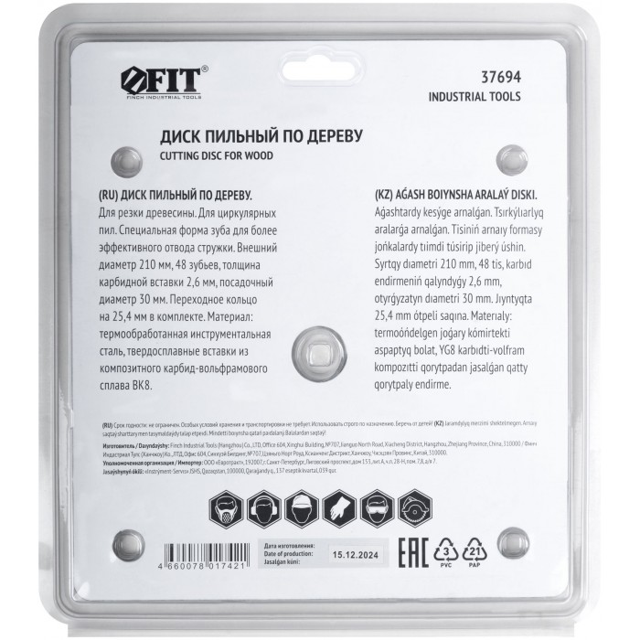 По дереву. Специальная форма зуба для улучшенного отвода стружки. Материал: высокоуглеродистая сталь, карбидные режущие вставки. Упаковка: картонный конверт.
