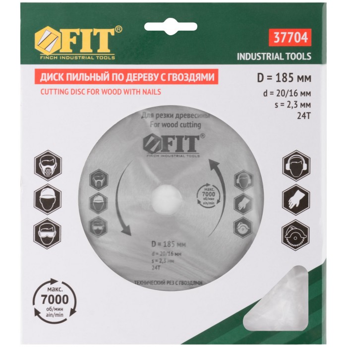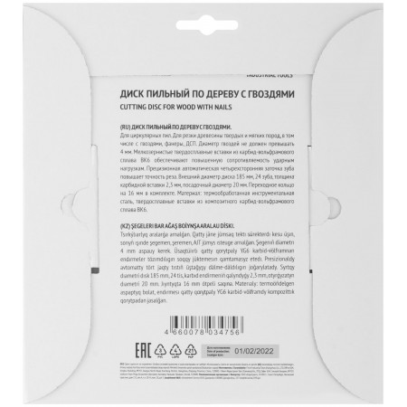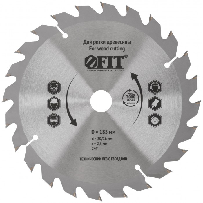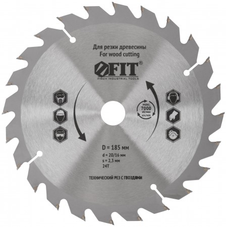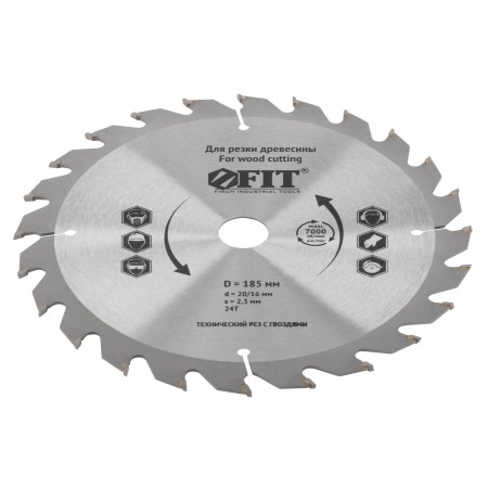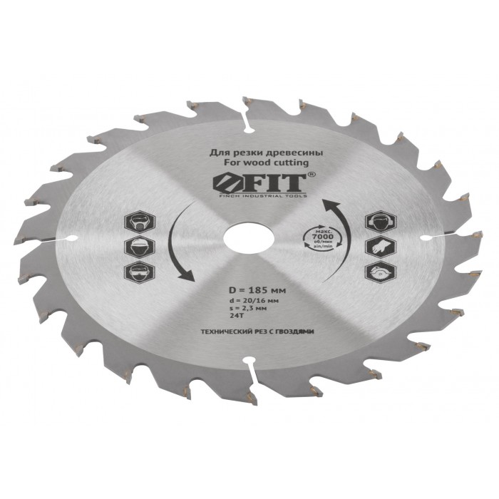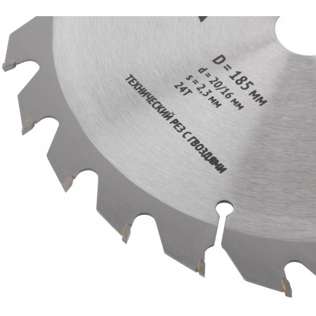 Диск пильный для циркулярных пил по дереву, технический рез с гвоздями 185 х 20/16 х 24T (37704)