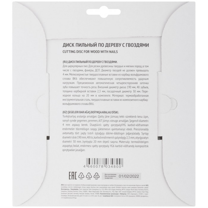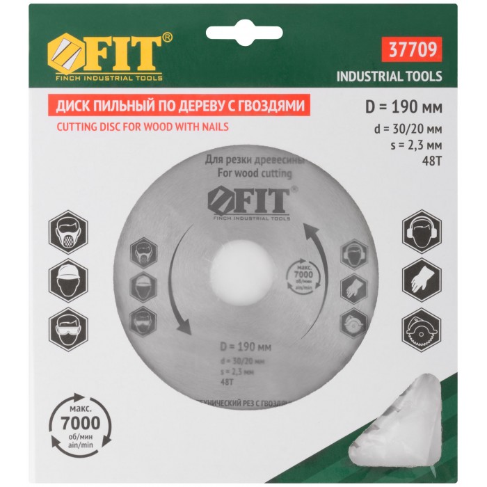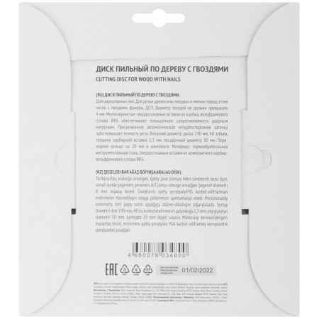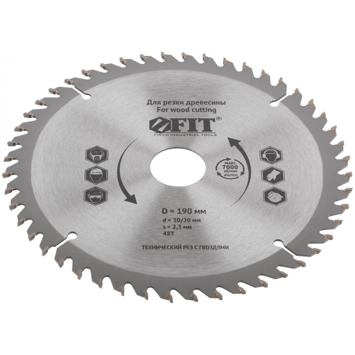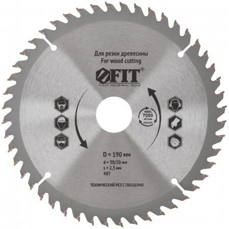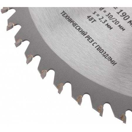 Диск пильный для циркулярных пил по дереву, технический рез с гвоздями 190 х 30/20 х 48T (37709)