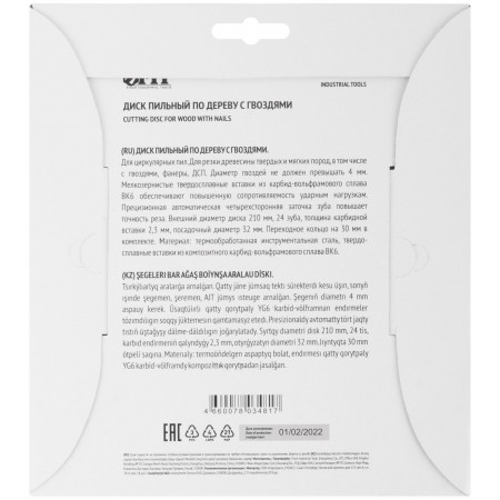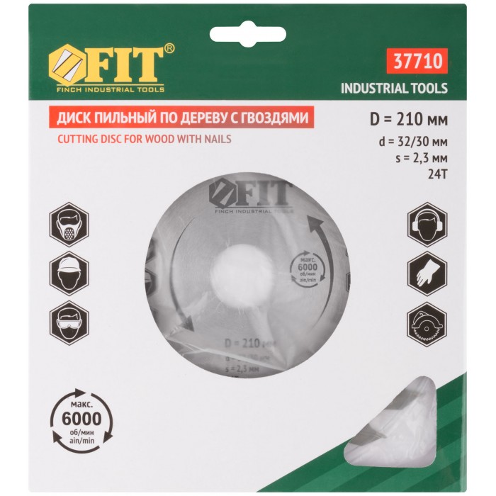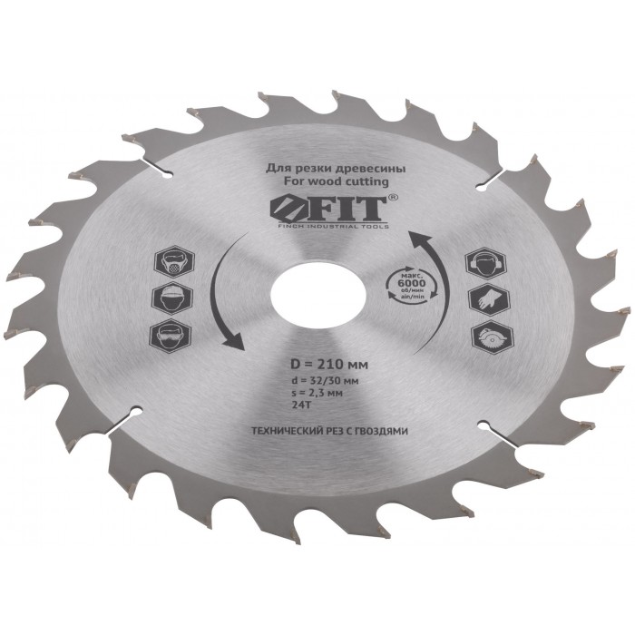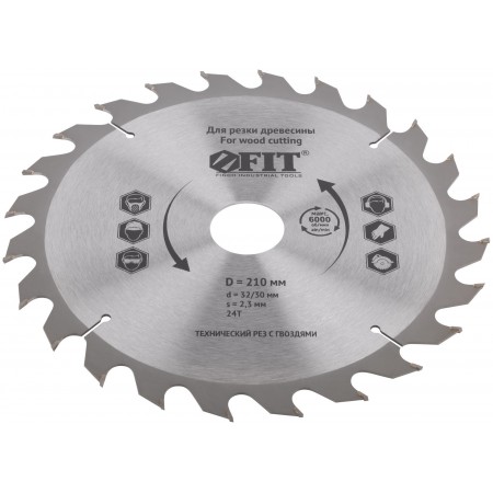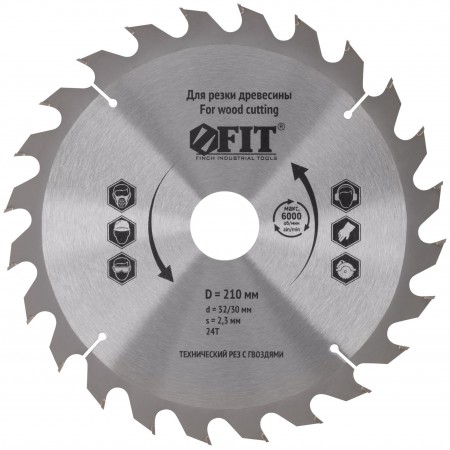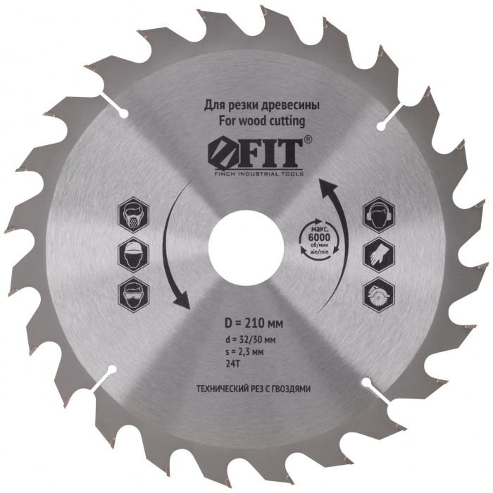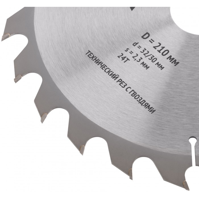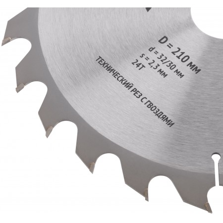 Диск пильный для циркулярных пил по дереву, технический рез с гвоздями 210 х 32/30 х 24T (37710)