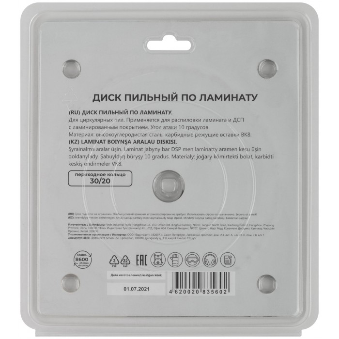 По ламинату. Зубья из твердого сплава ВК8 (карбид вольфрама). Корпус из легированной высокоуглеродистой стали. Угол атаки +10°. Упаковка: блистер.