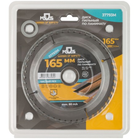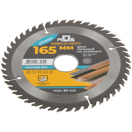 Диск пильный для циркулярных пил по ламинату 165 х 30 х 48T + кольцо 30/20 мм (37793М)