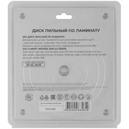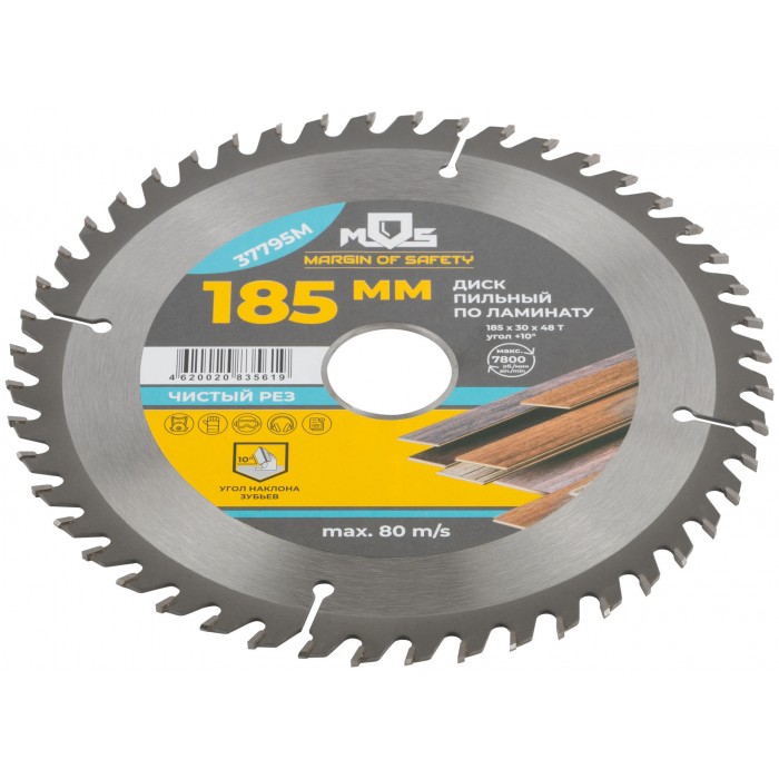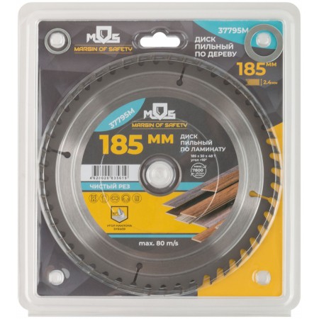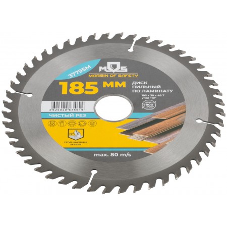 Диск пильный для циркулярных пил по ламинату 185 х 30 х 48T + 2 кольца: 30/20 и 20/16 мм (37795М)