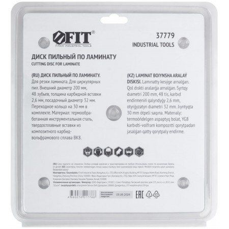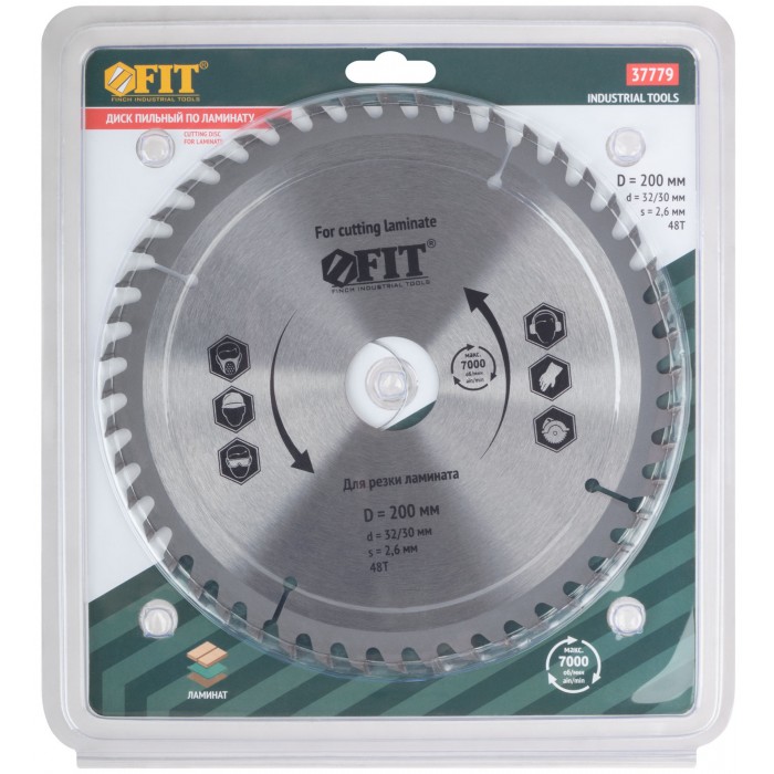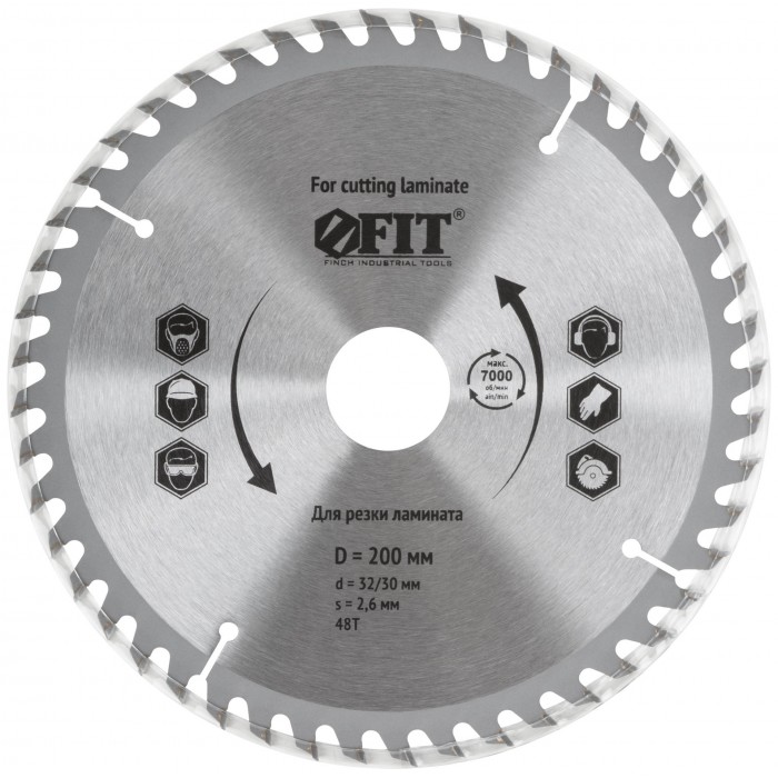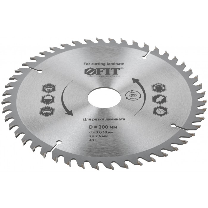Диск пильный для циркулярных пил по ламинату 200 х 32/30 х 48T (37779)