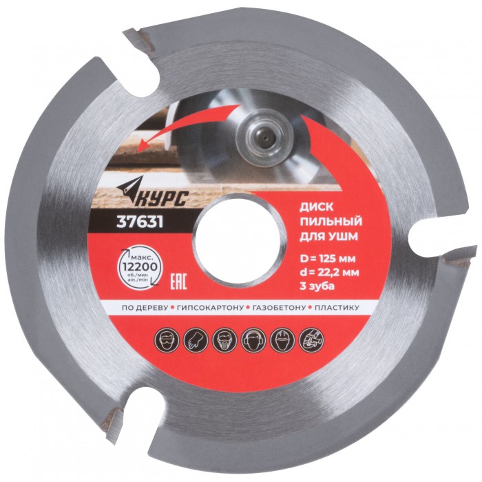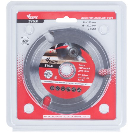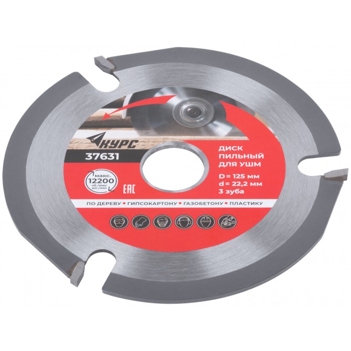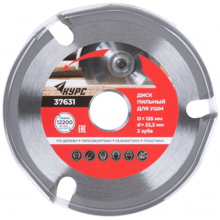 Диск пильный по дереву, посадочный диаметр 22,2 мм, 3 зуба с карбидными вставками, 125 мм (37631)