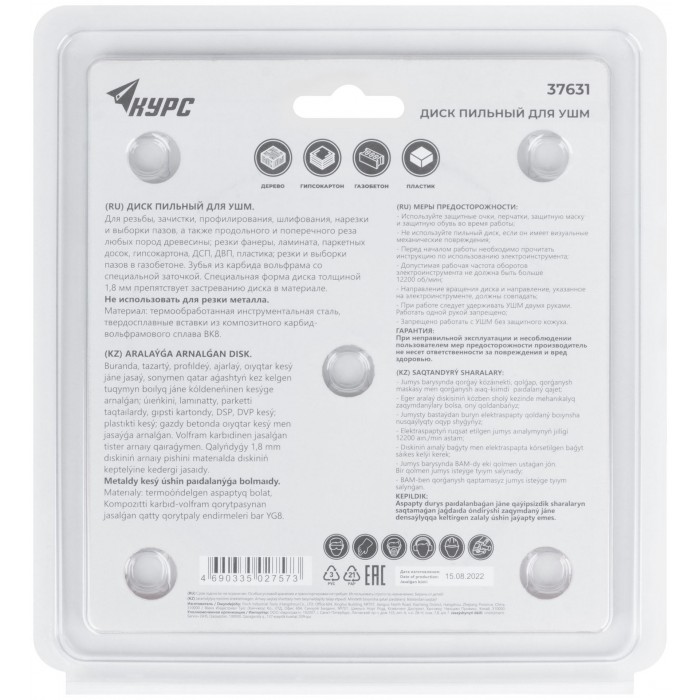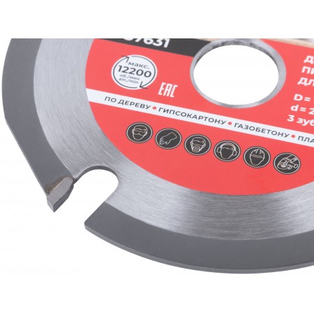 По дереву, газобетону, гипсокартону, пластмассе. Для углошлифовальных машин. Посадочный диаметр 22,2 мм. 3 зуба с карбидными вставками. Специальная форма диска препятствует застреванию в материале. Материал: инструментальная сталь, зубья с карбидными вставками.