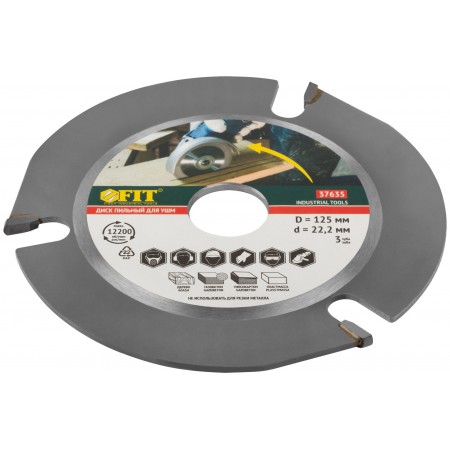 По дереву, газобетону, гипсокартону, пластмассе. Для углошлифовальных машин. Посадочный диаметр 22,2 мм. 3 зуба с карбидными вставками. Специальная форма диска препятствует застреванию в материале. Материал: инструментальная сталь, зубья с карбидными вставками. Упаковка: блистер.