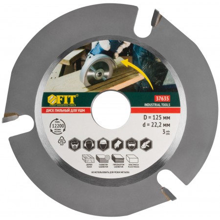 Диск пильный по дереву, посадочный диаметр 22,2 мм, 3 зуба с карбидными вставками, 125 мм (37635)
