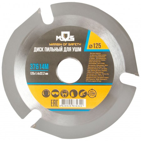 Диск пильный по дереву, посадочный диаметр 22,2 мм, 3 зуба с карбидными вставками, мелкий зуб, 125 мм (37614М)