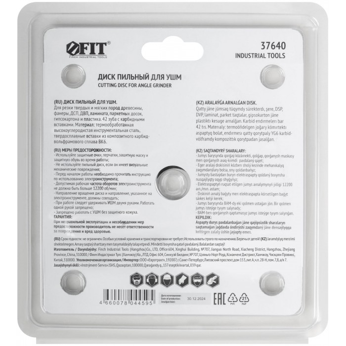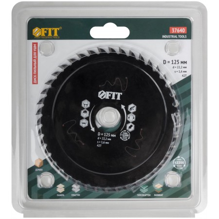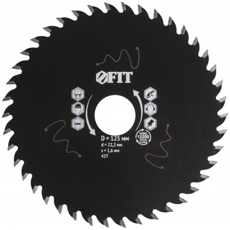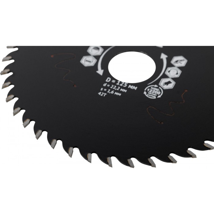 Диск пильный по дереву, посадочный диаметр 22,2 мм, 42 зуба с карбидными вставками, 125 мм (37640)