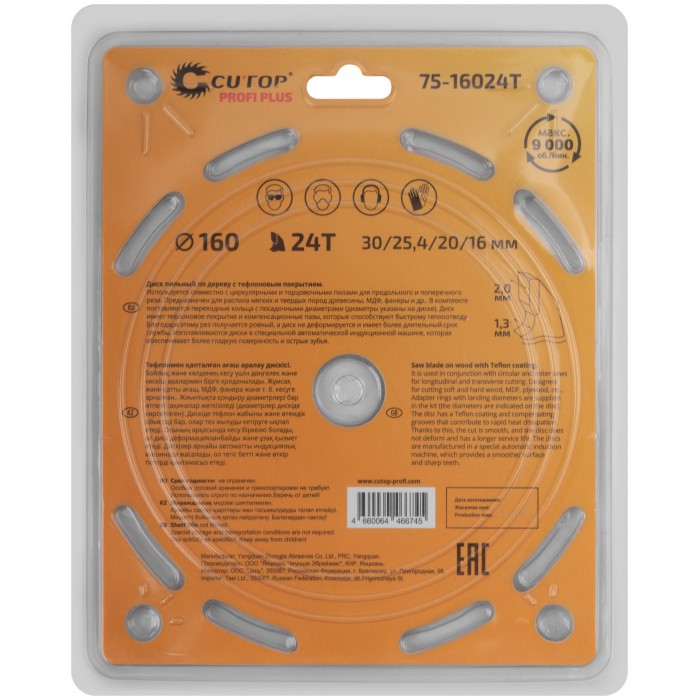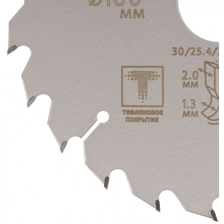 Диск имеет тефлоновое покрытие и компенсационные пазы, которы способствуют быстрому теплоотводу. Благодаря этому рез получается ровный, а диск не деформируется и имеет более длительный срок службы. Изготавливаются диски в специальной автоматической индукционной машине, которая обеспечивает более гладкую поверхность и острые зубья. Материал: инструментальная сталь, карбидные зубья. Упаковка: блистер.