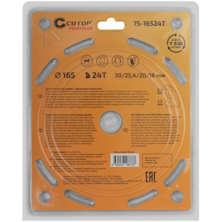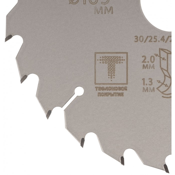 Диск имеет тефлоновое покрытие и компенсационные пазы, которы способствуют быстрому теплоотводу. Благодаря этому рез получается ровный, а диск не деформируется и имеет более длительный срок службы. Изготавливаются диски в специальной автоматической индукционной машине, которая обеспечивает более гладкую поверхность и острые зубья. Материал: инструментальная сталь, карбидные зубья. Упаковка: блистер.