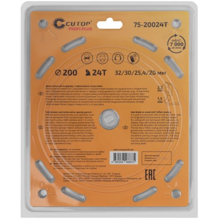Диск имеет тефлоновое покрытие и компенсационные пазы, которы способствуют быстрому теплоотводу. Благодаря этому рез получается ровный, а диск не деформируется и имеет более длительный срок службы. Изготавливаются диски в специальной автоматической индукционной машине, которая обеспечивает более гладкую поверхность и острые зубья. Материал: инструментальная сталь, карбидные зубья. Упаковка: блистер.