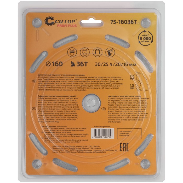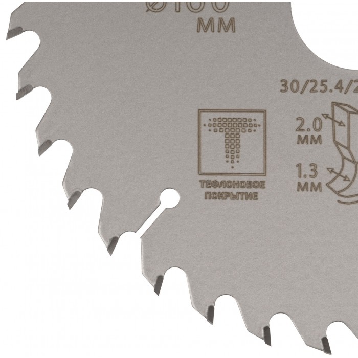 Диск имеет тефлоновое покрытие и компенсационные пазы, которы способствуют быстрому теплоотводу. Благодаря этому рез получается ровный, а диск не деформируется и имеет более длительный срок службы. Изготавливаются диски в специальной автоматической индукционной машине, которая обеспечивает более гладкую поверхность и острые зубья. Материал: инструментальная сталь, карбидные зубья. Упаковка: блистер.