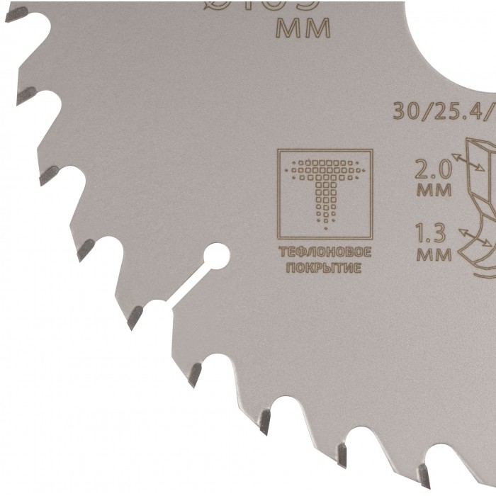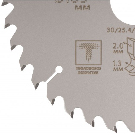 Диск имеет тефлоновое покрытие и компенсационные пазы, которы способствуют быстрому теплоотводу. Благодаря этому рез получается ровный, а диск не деформируется и имеет более длительный срок службы. Изготавливаются диски в специальной автоматической индукционной машине, которая обеспечивает более гладкую поверхность и острые зубья. Материал: инструментальная сталь, карбидные зубья. Упаковка: блистер.