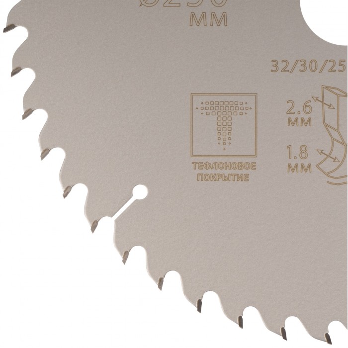 Диск имеет тефлоновое покрытие и компенсационные пазы, которы способствуют быстрому теплоотводу. Благодаря этому рез получается ровный, а диск не деформируется и имеет более длительный срок службы. Изготавливаются диски в специальной автоматической индукционной машине, которая обеспечивает более гладкую поверхность и острые зубья. Материал: инструментальная сталь, карбидные зубья. Упаковка: блистер.