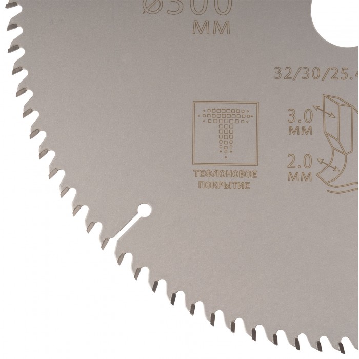 Диск имеет тефлоновое покрытие и компенсационные пазы, которы способствуют быстрому теплоотводу. Благодаря этому рез получается ровный, а диск не деформируется и имеет более длительный срок службы. Изготавливаются диски в специальной автоматической индукционной машине, которая обеспечивает более гладкую поверхность и острые зубья. Материал: инструментальная сталь, карбидные зубья. Упаковка: блистер.