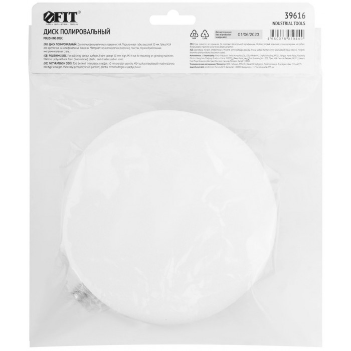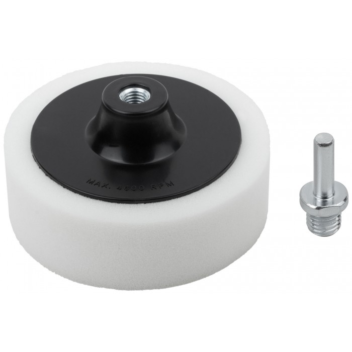 Поролоновый. Гайка М14 для крепления на УШМ. В комплекте переходник со штифтом для крепления на дрель. Упаковка: п/э пакет с картонным подвесом.