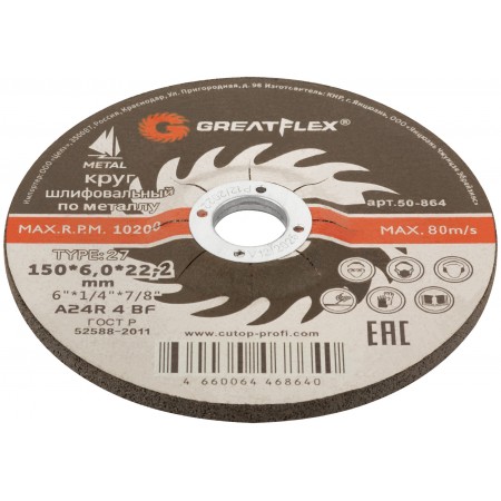 Диск шлифовальный по металлу Greatflex Т27-150 х 6,0 х 22,2 мм (50-864)