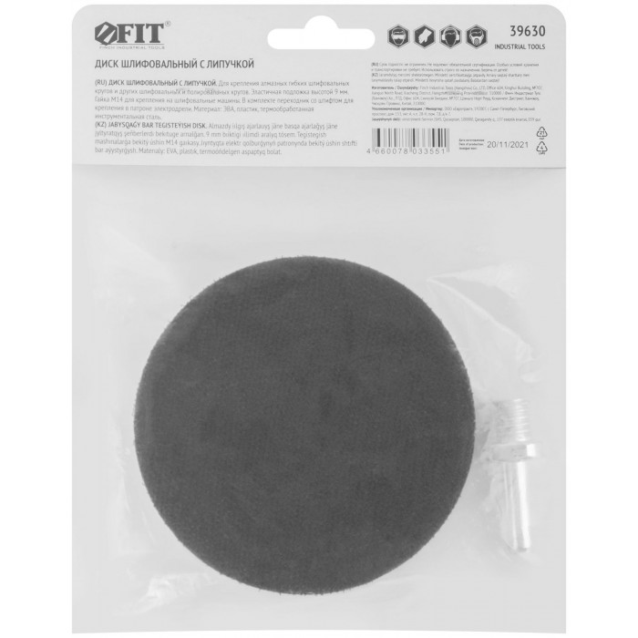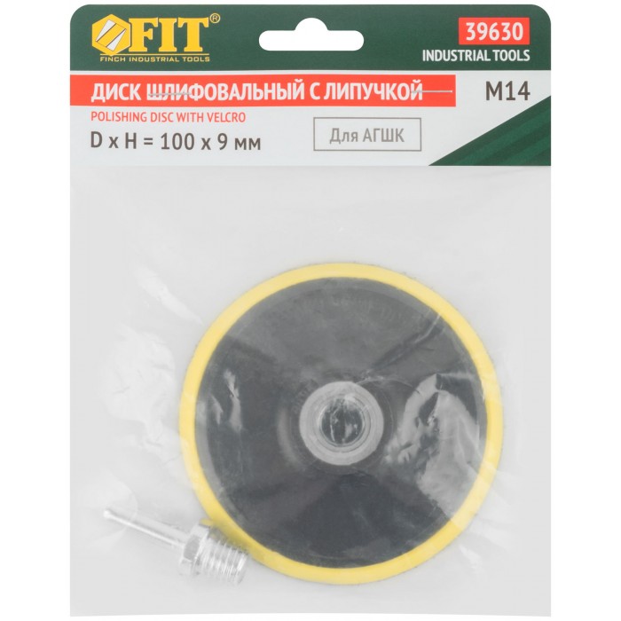 Диск шлифовальный с липучкой для АГШК, гайка М14 + переходник для дрели, 100x9 мм (39630)