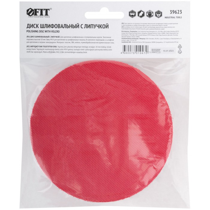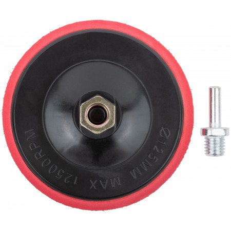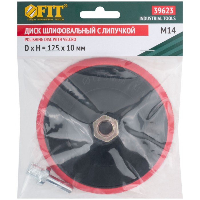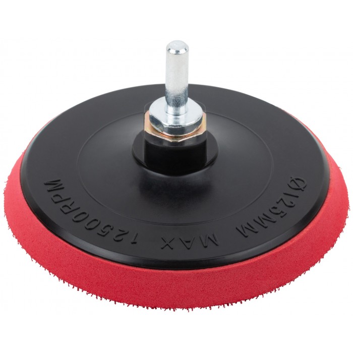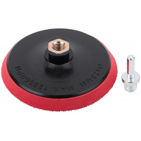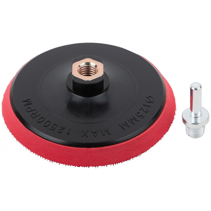 Шлифовальный диск с липучкой, пластиковая основа. Гайка М14 для крепления на УШМ. В комплект входит переходник со штифтом из инструментальной стали для крепления на дрель. Предназначен для крепления наждачных кругов. Упаковка: п/э пакет с картонным подвесом.
