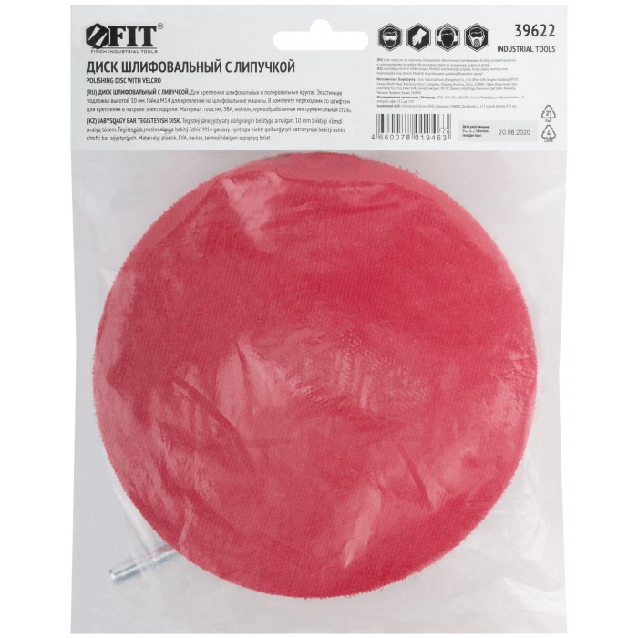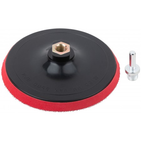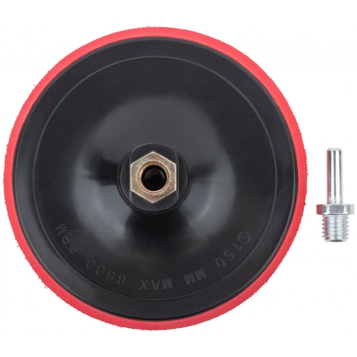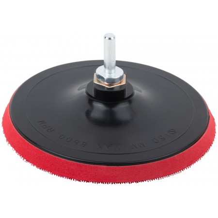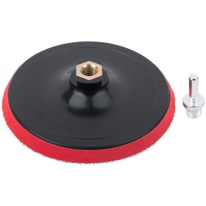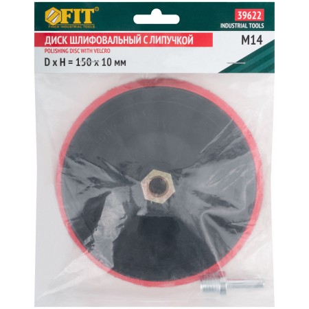 Шлифовальный диск с липучкой, пластиковая основа. Гайка М14 для крепления на УШМ. В комплект входит переходник со штифтом из инструментальной стали для крепления на дрель. Предназначен для крепления наждачных кругов. Упаковка: п/э пакет с картонным подвесом.
