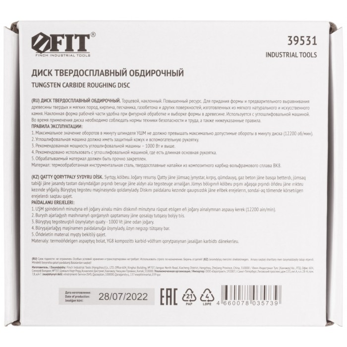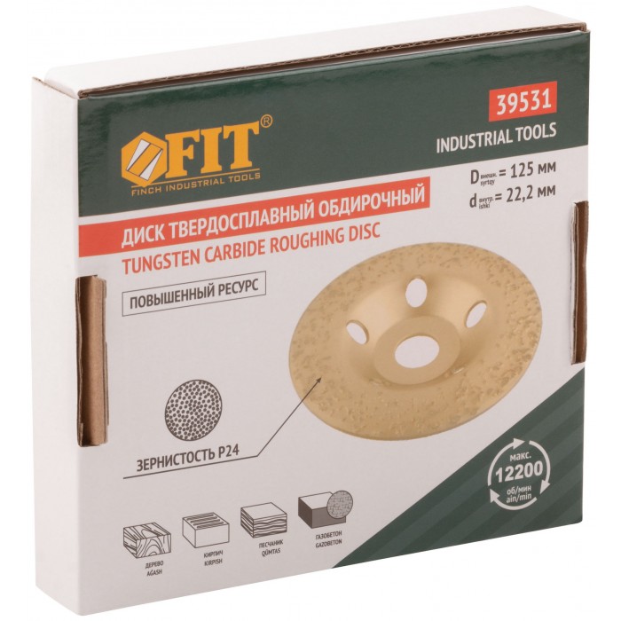 Диск твердосплавный шлифовальный, наклонный, посадочный диаметр 22,2 мм, 125 мм, Р24 (39531)