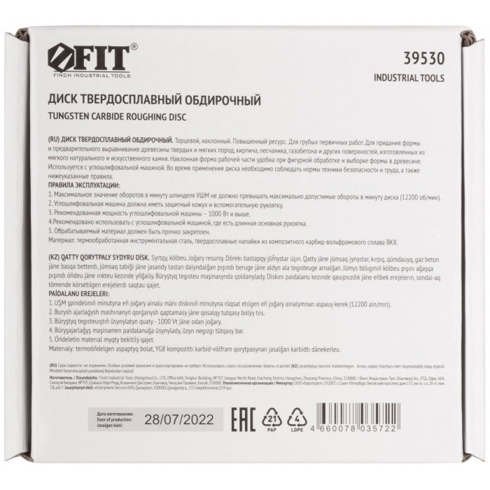 Диск твердосплавный шлифовальный, наклонный, посадочный диаметр 22,2 мм, 125 мм, Р8 (39530)
