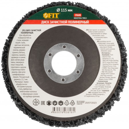 Диск зачистной полимерный, черный, посадочный диаметр 22,2 мм, 115 мм (39608)