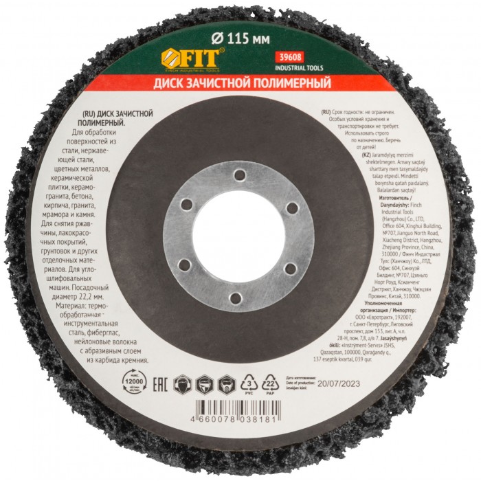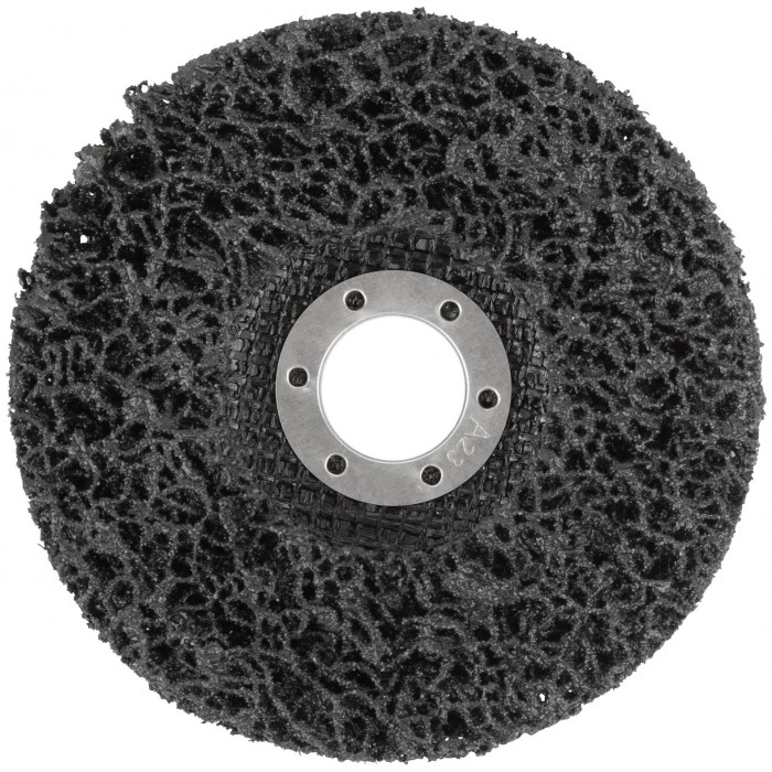 Для обработки поверхностей из стали, нержавеющей стали, цветных металлов, керамической плитки, керамогранита, бетона, кирпича, гранита, мрамора и камня. Для снятия лакокрасочных покрытий, грунтовок и других отделочных материалов. Эффективно удаляет загрязнения с минимальным повреждением поверхности. Посадочный диаметр 22,2 мм. Материал: инструментальная сталь, фиберглас, нейлоновые волокна с абразивным слоем из карбида кремния.»