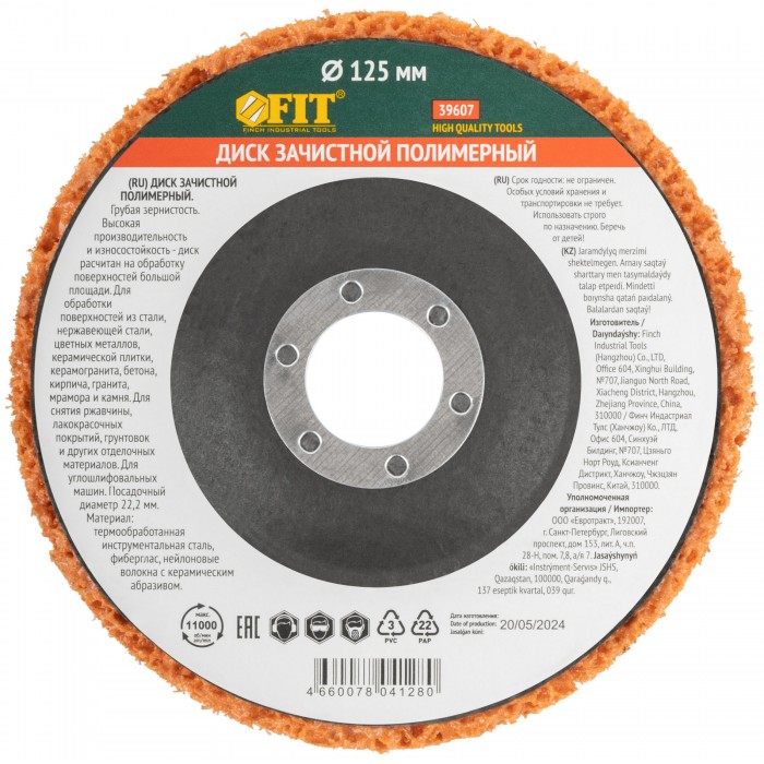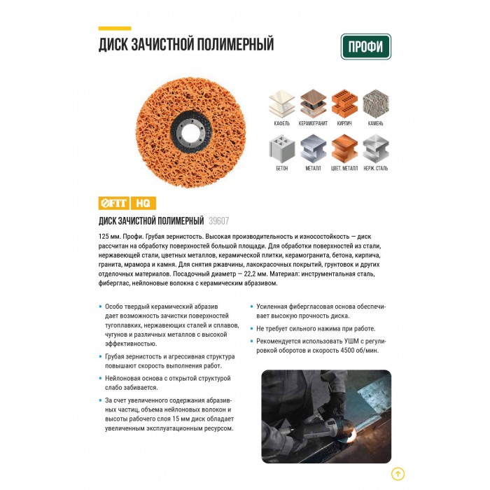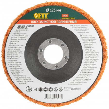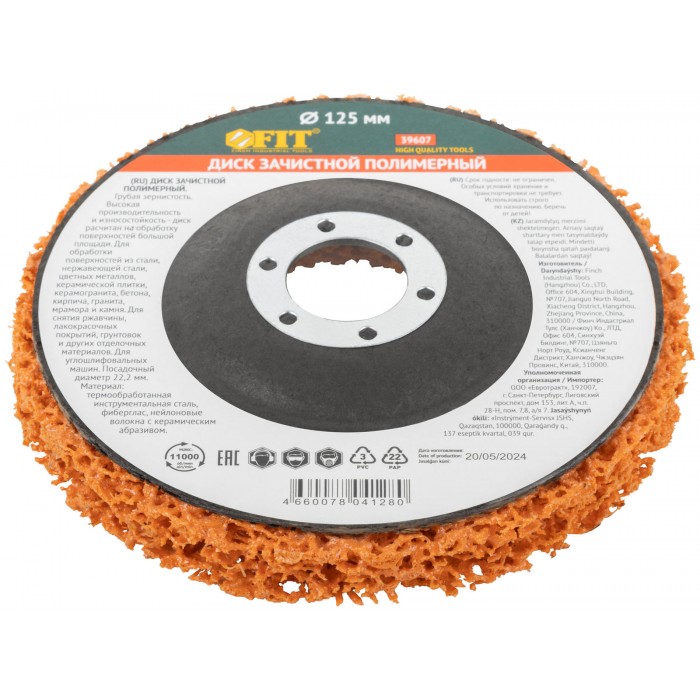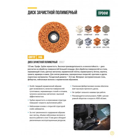 Диск зачистной полимерный, керамический абразив, посадочный диаметр 22,2 мм, 125 мм (39607)