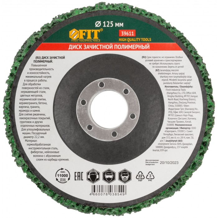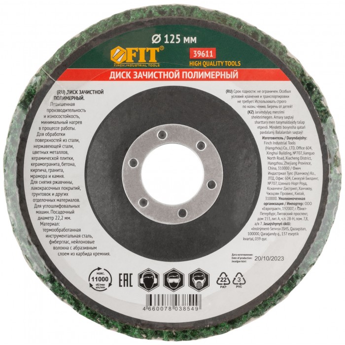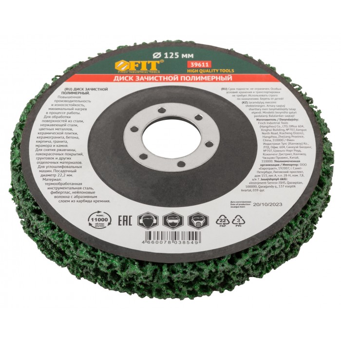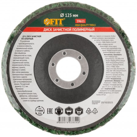 Диск зачистной полимерный, зеленый, посадочный диаметр 22,2 мм, 125 мм (39611)
