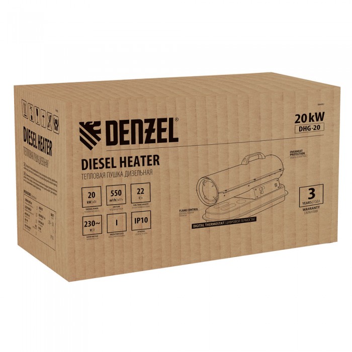 Дизельная тепловая пушка DHG-20, 20 кВт, 500 м3/ч, прямой нагрев Denzel (96482)