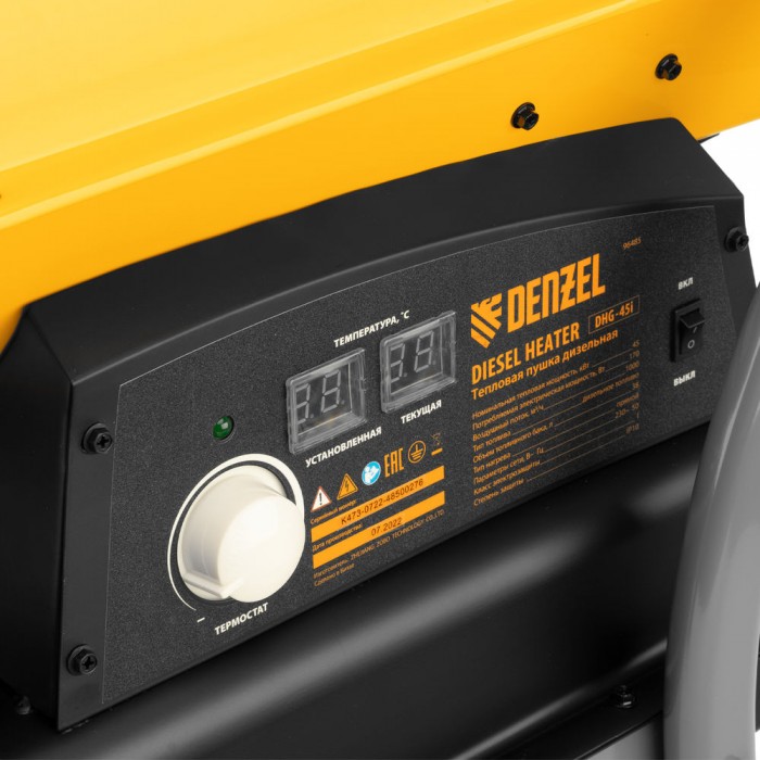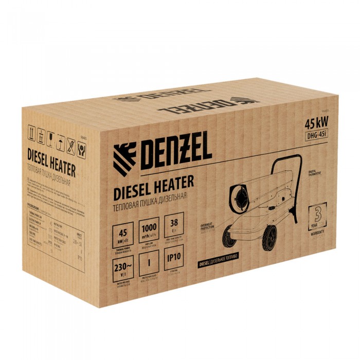 Дизельная тепловая пушка DHG-45i, 45 кВт, 1000 м3/ч, прямой нагрев, электронный термостат Denzel (96485)