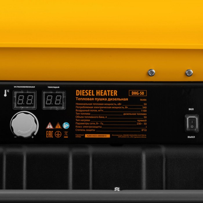 Дизельная тепловая пушка DHG-50, 50 кВт, 1100 м3/ч, прямой нагрев Denzel (96486)