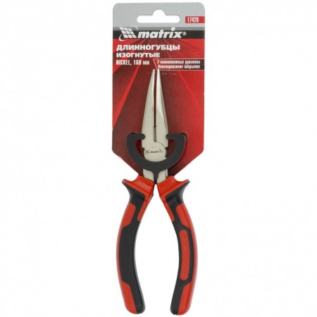 Длинногубцы изогнутые Nickel, 160 мм, никелированные, двухкомпонентные рукоятки Matrix (17420)