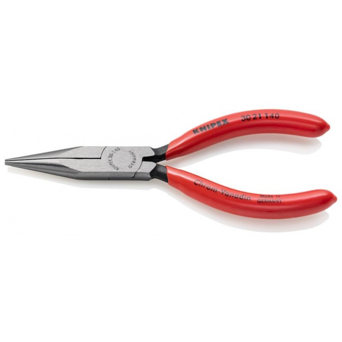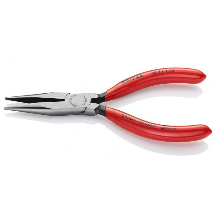 Длинногубцы, плоскокруглые рифлённые губки 42 мм, длина 140 мм, фосфатированные, обливные ручки (KN-3021140)