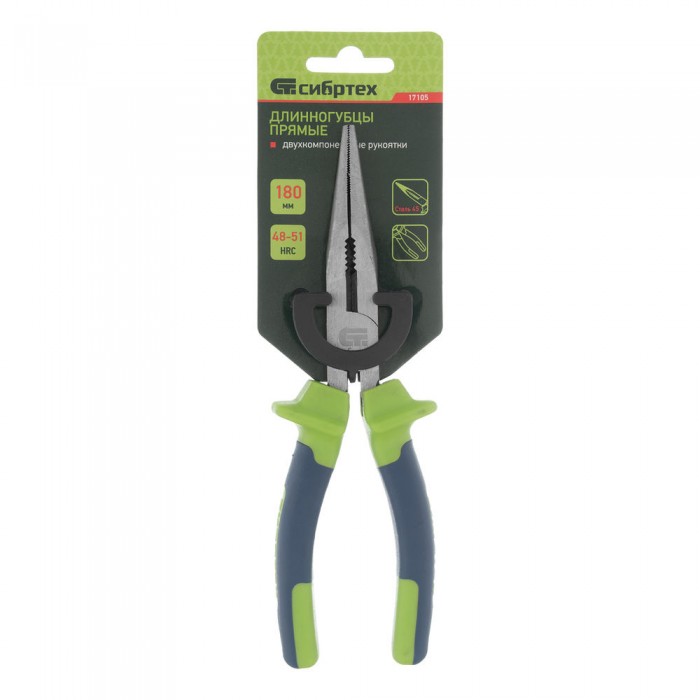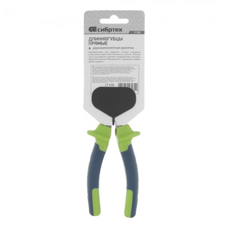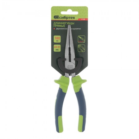 Длинногубцы прямые, 180 мм, двухкомпонентные рукоятки Сибртех (17105)