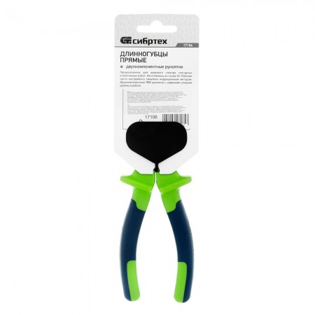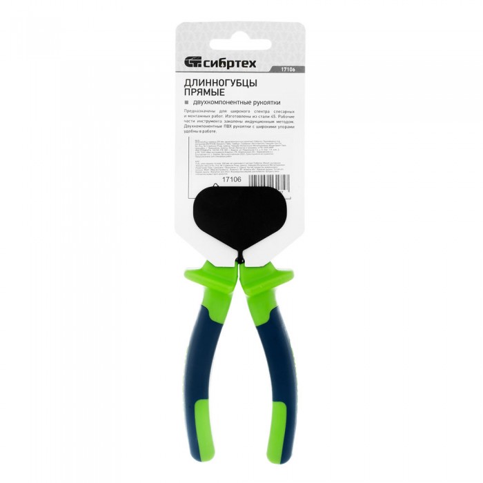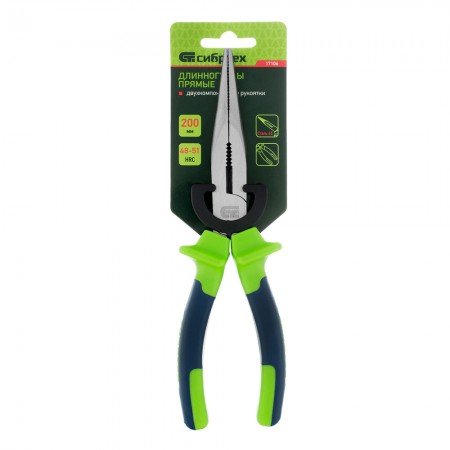 Длинногубцы прямые, 200 мм, двухкомпонентные рукоятки Сибртех (17106)