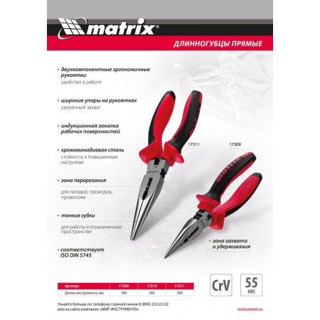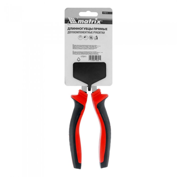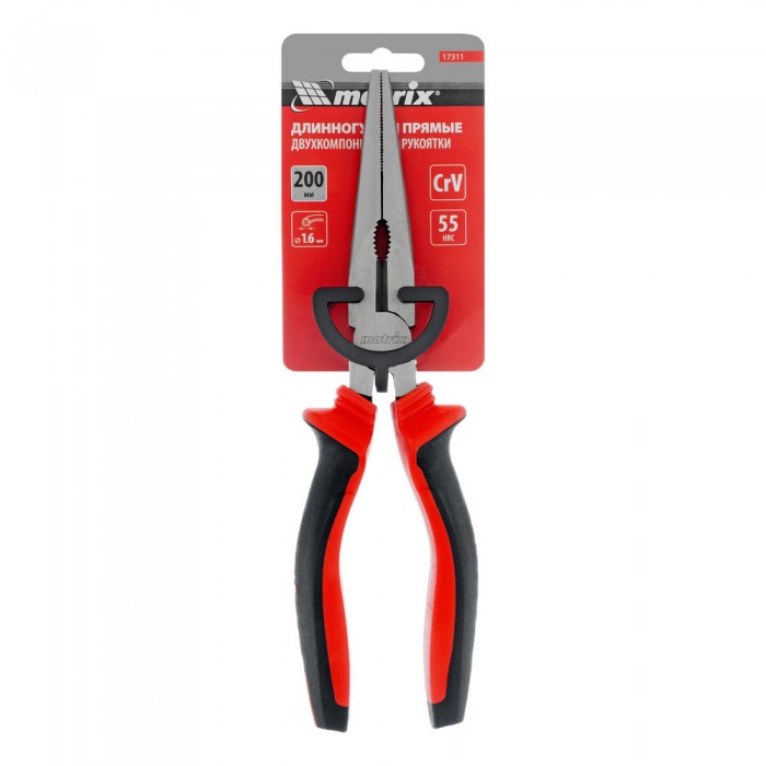 Длинногубцы прямые, 200 мм, хром-ванадий, двухкомпонентные рукоятки Matrix (17311)