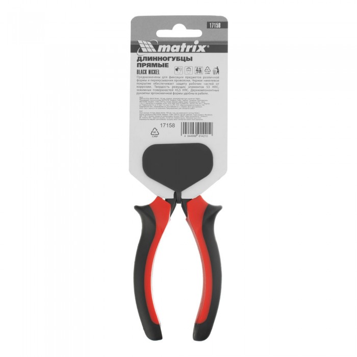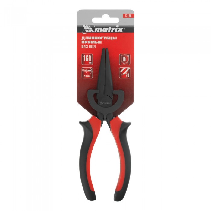 Длинногубцы прямые Black Nickel, 160 мм, двухкомпонентные рукоятки Matrix (17158)