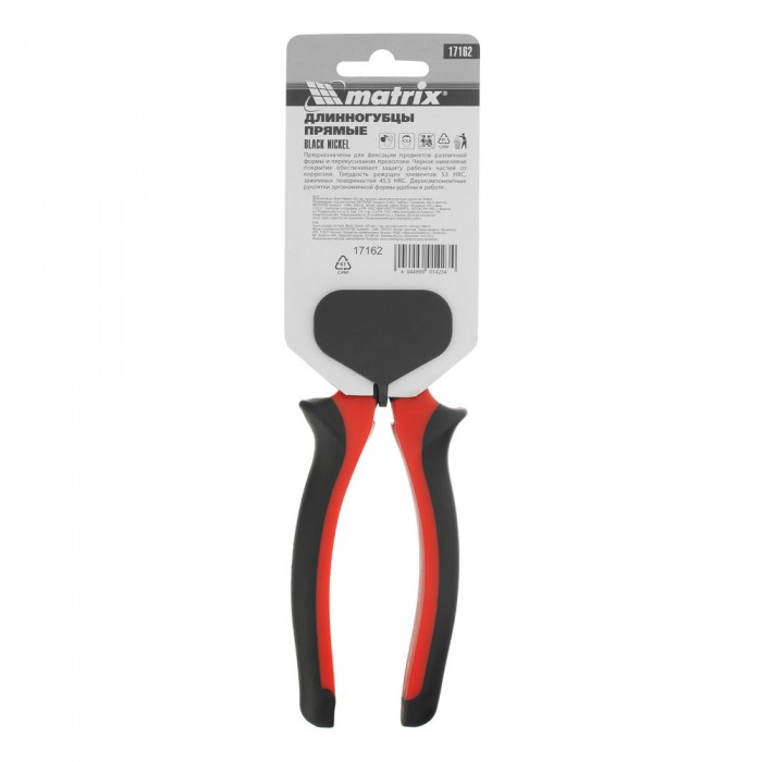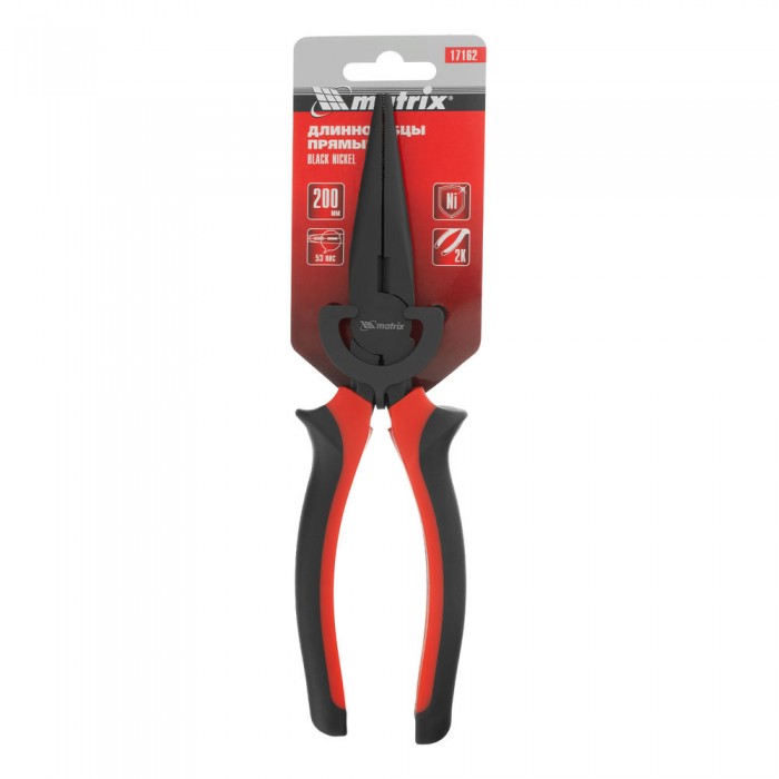 Длинногубцы прямые Black Nickel, 200 мм, двухкомпонентные рукоятки Matrix (17162)