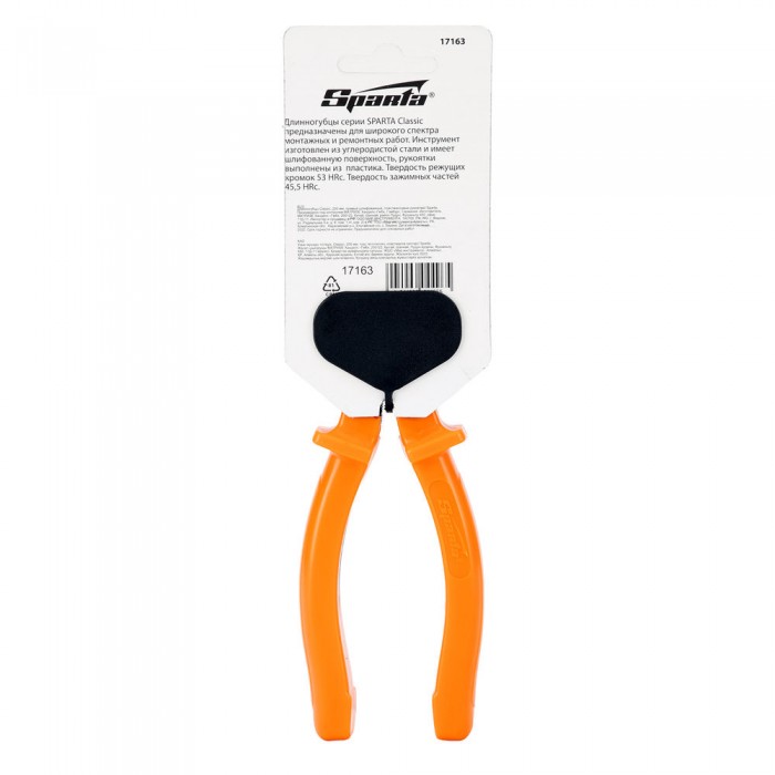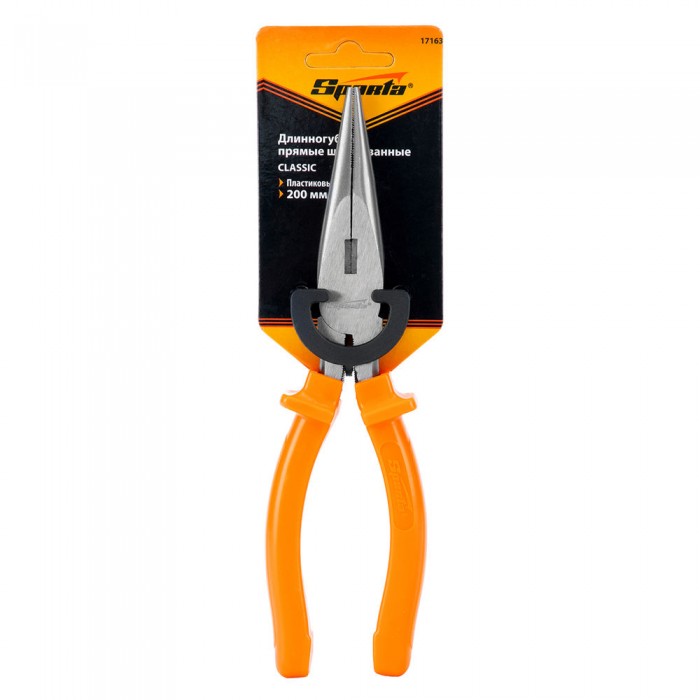 Длинногубцы прямые Classic, 200 мм, шлифованные, пластмассовые рукоятки Sparta (17163)