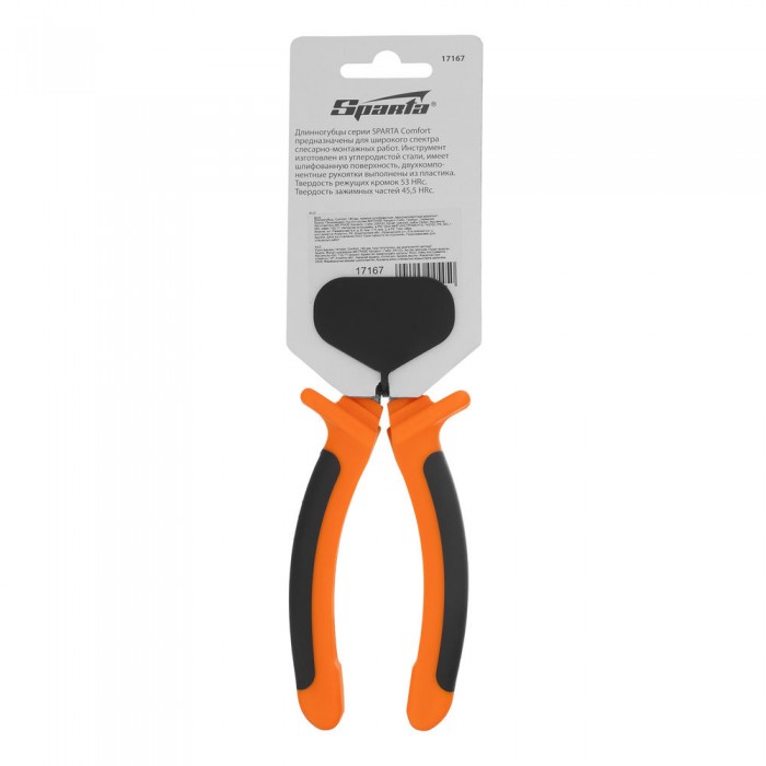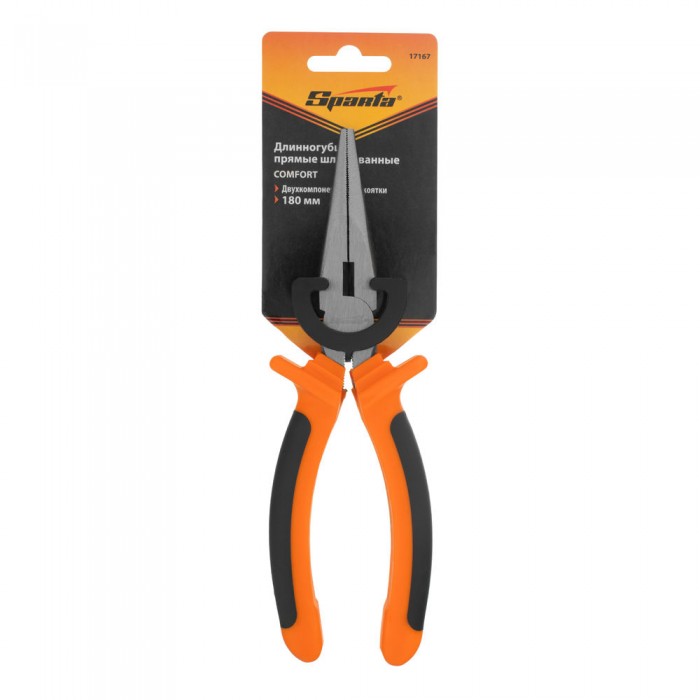 Длинногубцы прямые Comfort, 180 мм, шлифованные, двухкомпонентные рукоятки Sparta (17167)