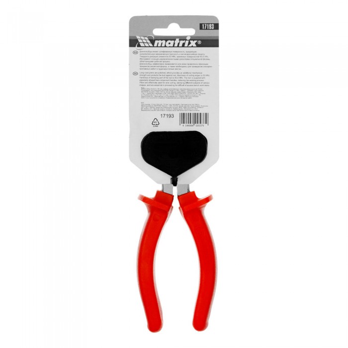 Длинногубцы прямые Econom, 180 мм, шлифованные, пластмассовые рукоятки Matrix (17193)