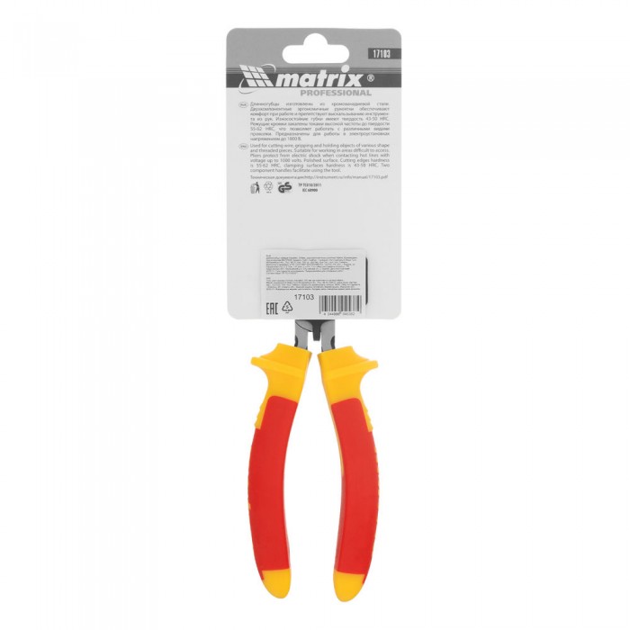 Длинногубцы прямые Insulated, 200 мм, двухкомпонентные рукоятки Matrix Professional (17103)