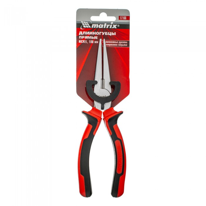 Длинногубцы прямые Nickel, 180 мм, никелированные, двухкомпонентные рукоятки Matrix (17166)