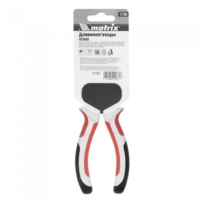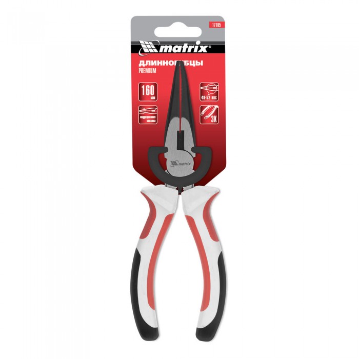 Длинногубцы прямые Premium, 160 мм, трехкомпонентные рукоятки Matrix (17185)