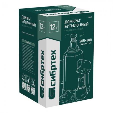 Домкрат гидравлический бутылочный, 12 т, 205-400 мм Сибртех