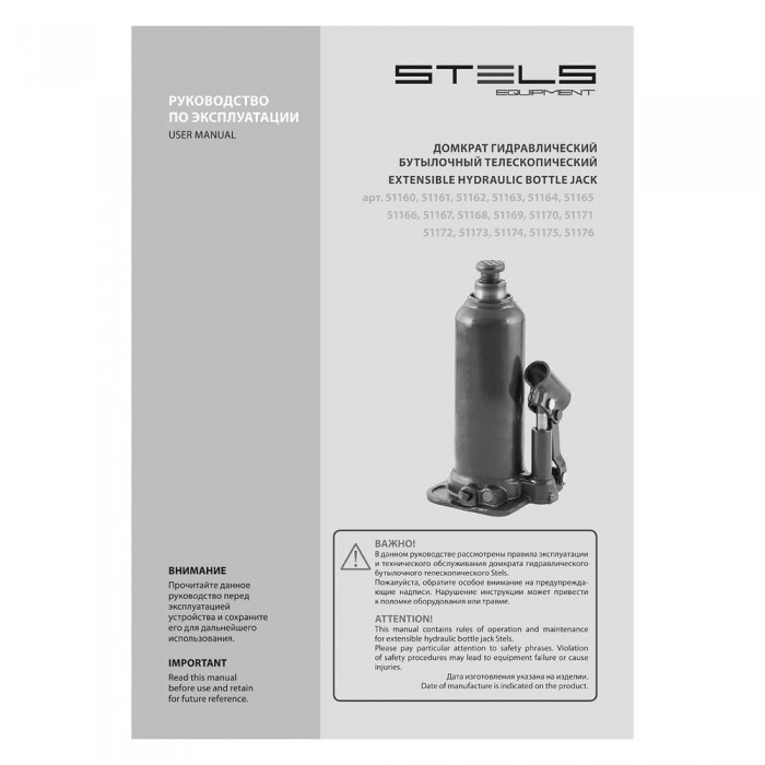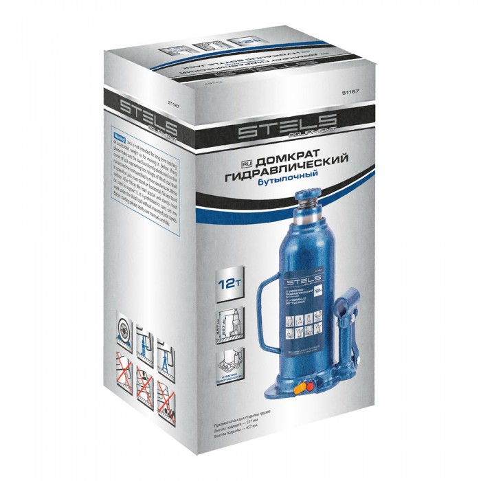 Домкрат гидравлический бутылочный, 12 т, h подъема 227-457 мм Stels